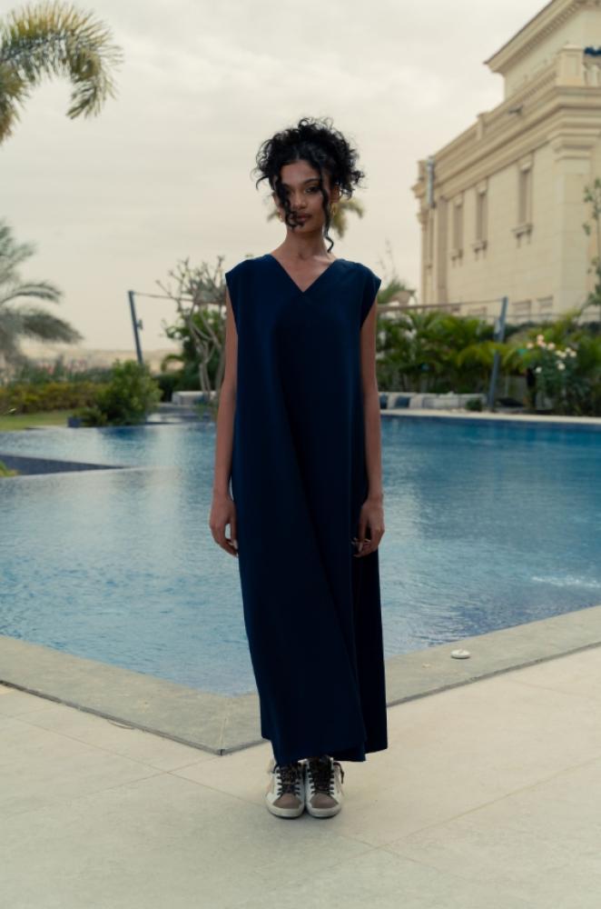 • يعكس الفستان البساطة مع لمسة فنية معاصرة